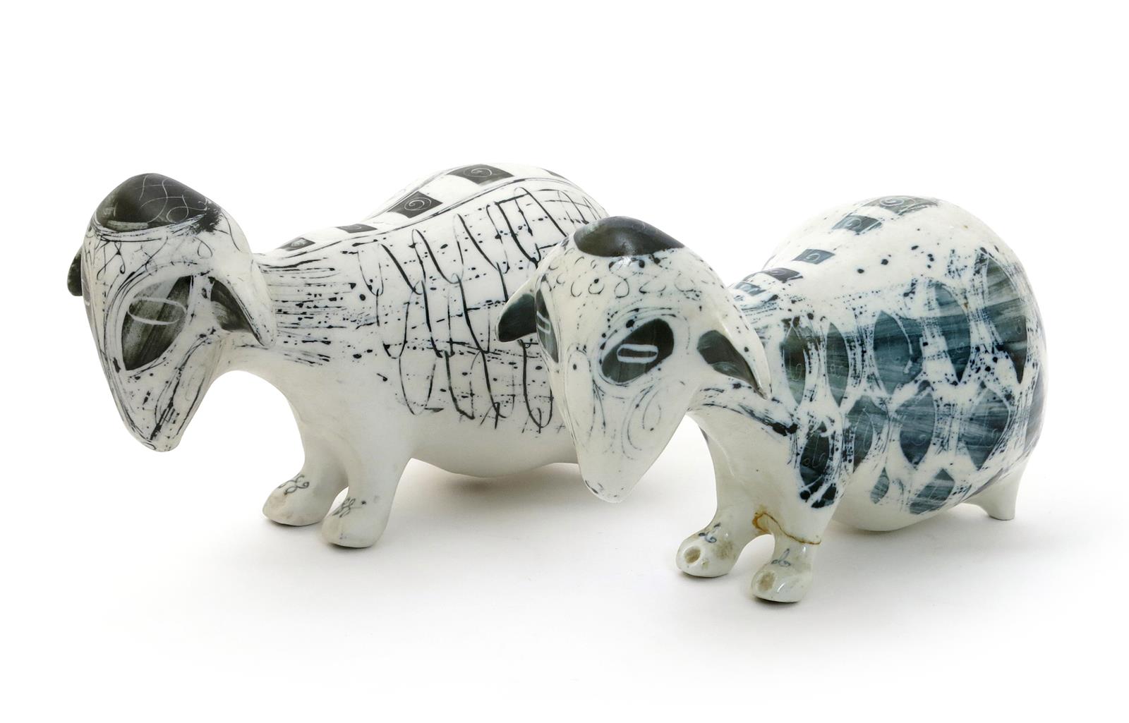 Two Richard Parkinson Pottery sheep models designed by Susan Parkinson