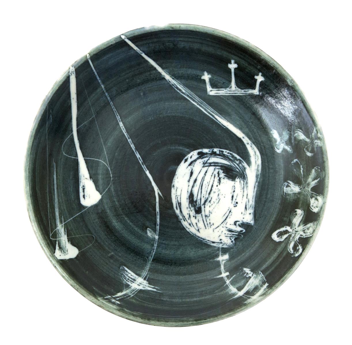 A Richard Parkinson Pottery Queen wall plate from the Chess Series designed by Susan Parkinson, painted in blue-black, unmarked 21.5cm. diam.