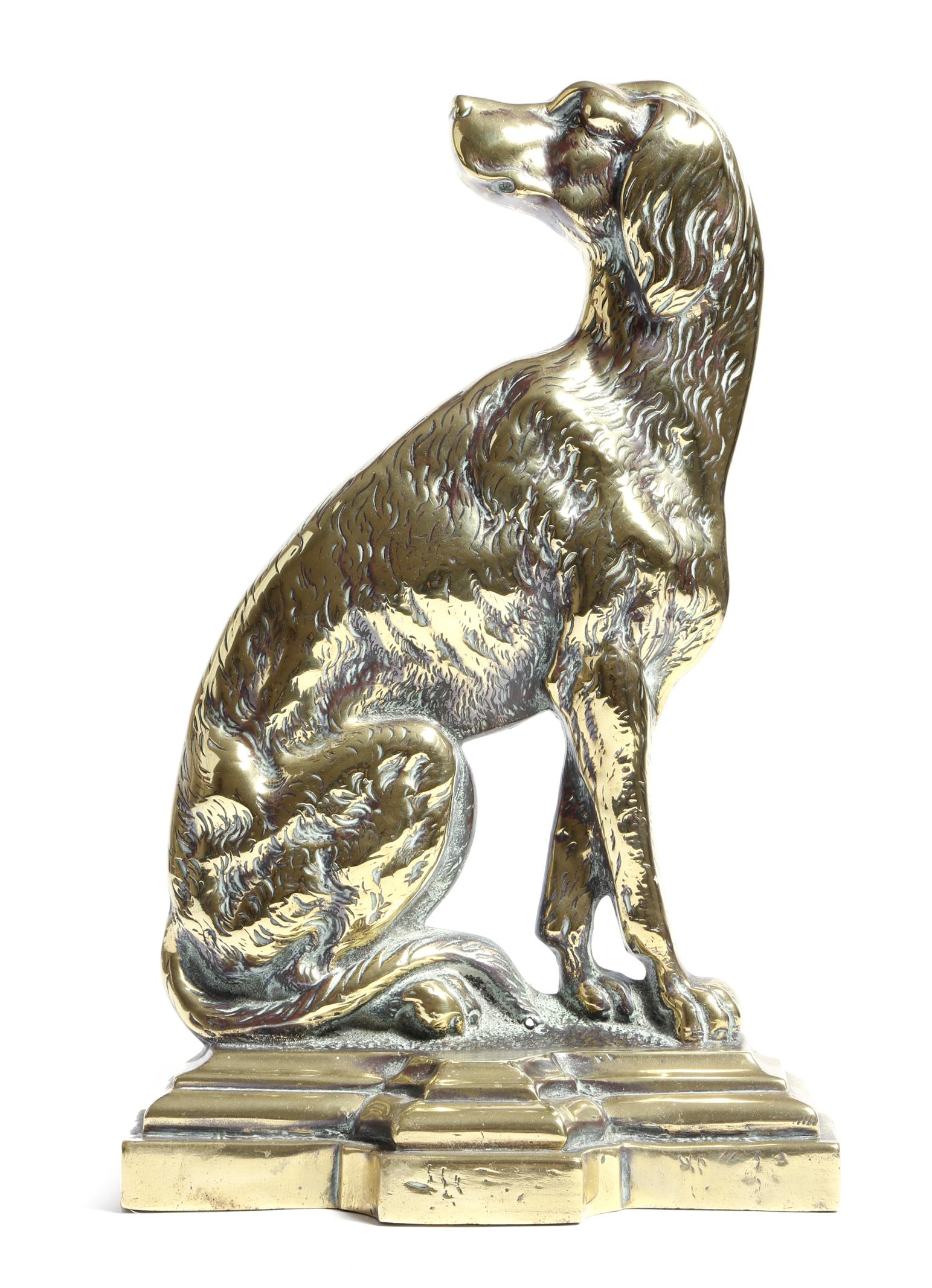 A Victorian brass doorstop in the form of a seated dog, 36cm high.