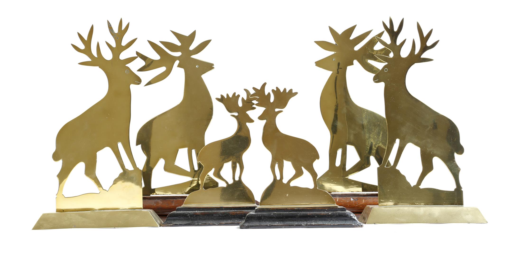 Three pairs of 19th century brass flat-back stag chimney ornaments