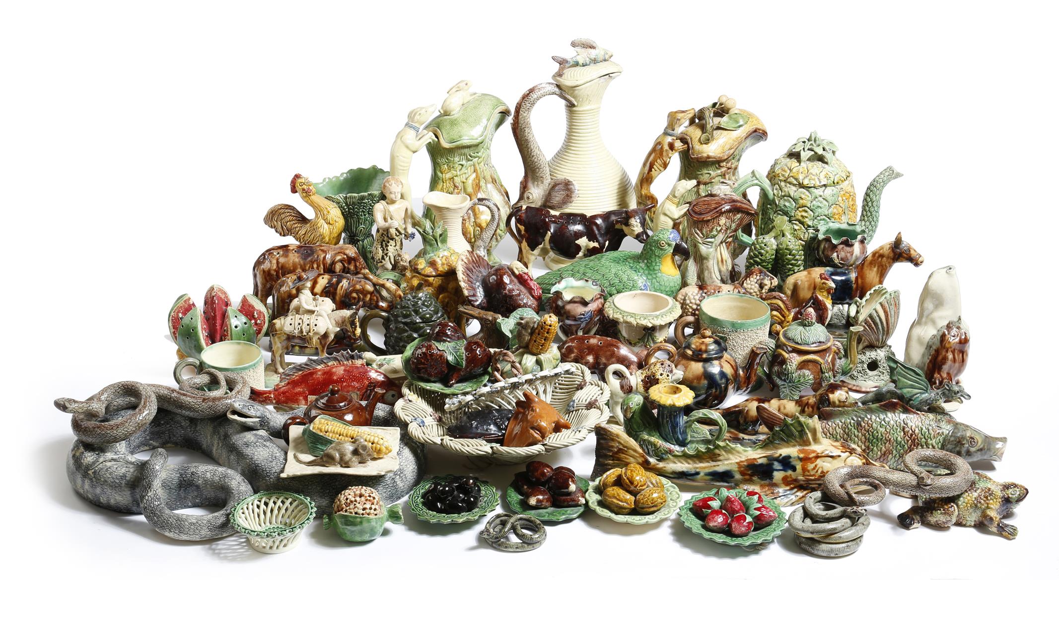 A large collection of Portuguese Caldas da Rainha majolica pottery
