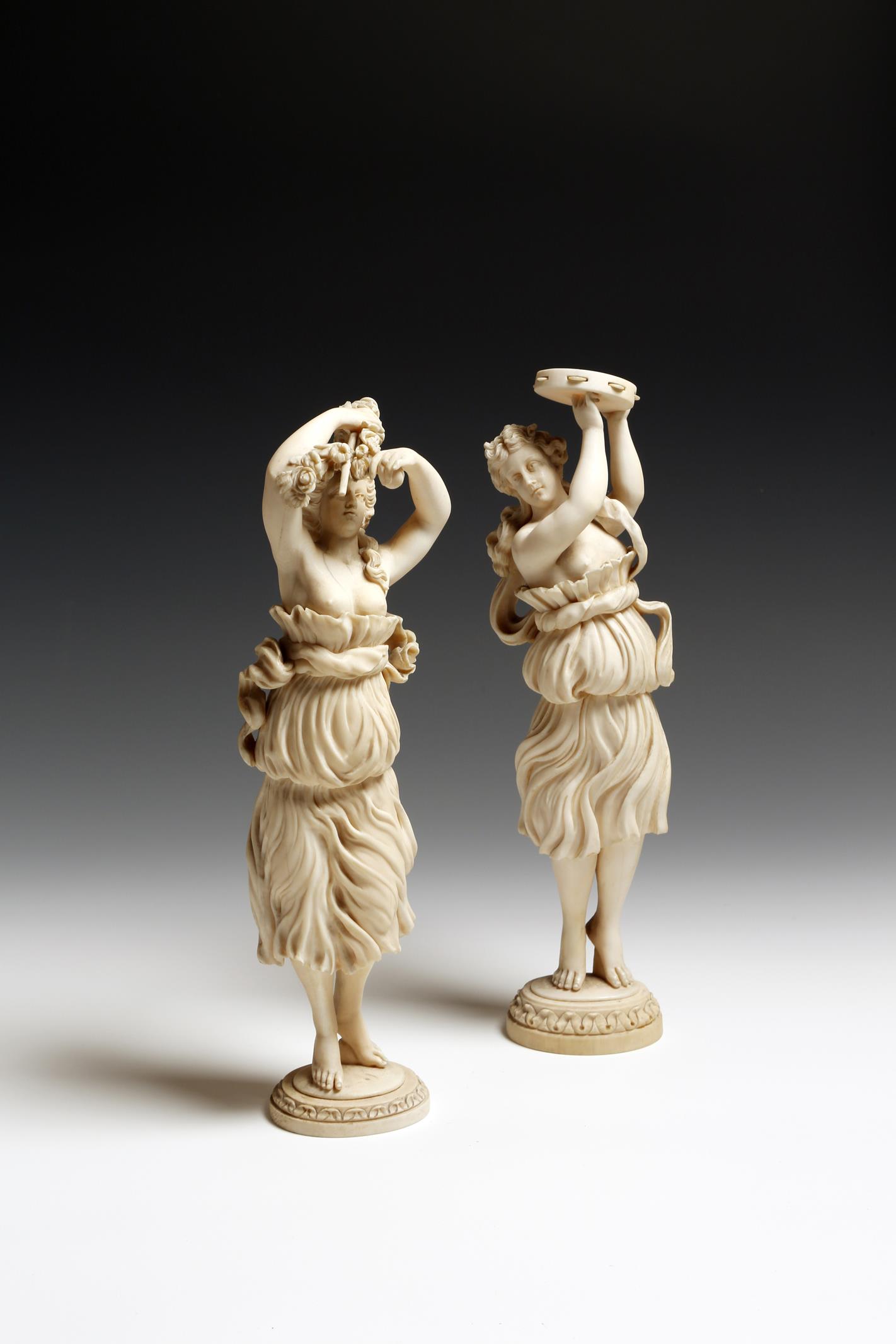 λ A pair of 19th century French Dieppe carved ivory dancing girls