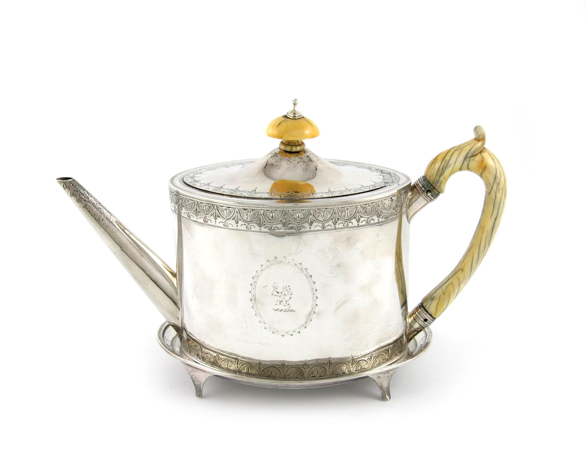 the teapot by Henry Chawner, London 1791, the stand by Elizabeth Jones, London 1791,