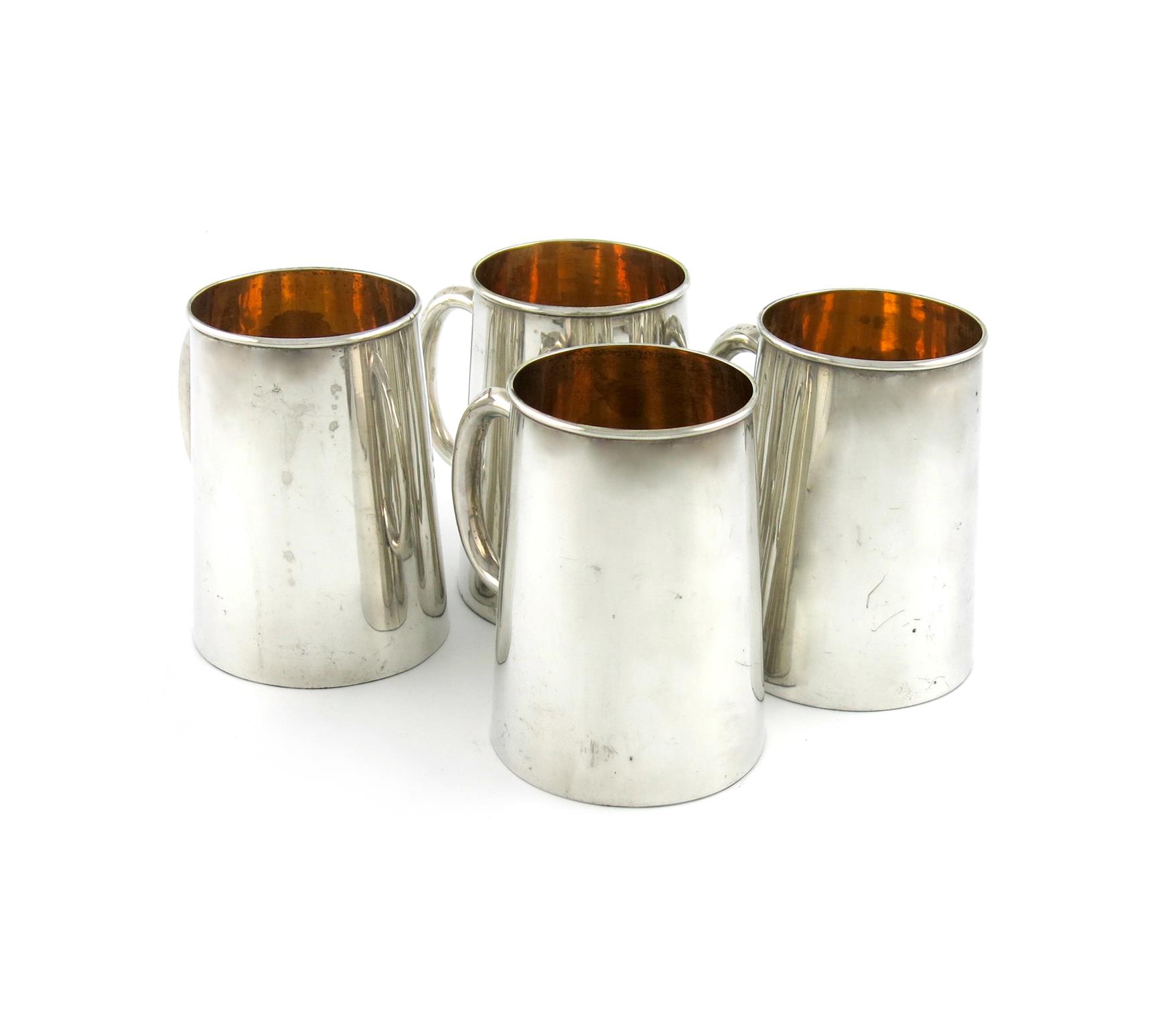 tapering circular form, scroll handles, gilded interiors, height 12.2cm. (4)