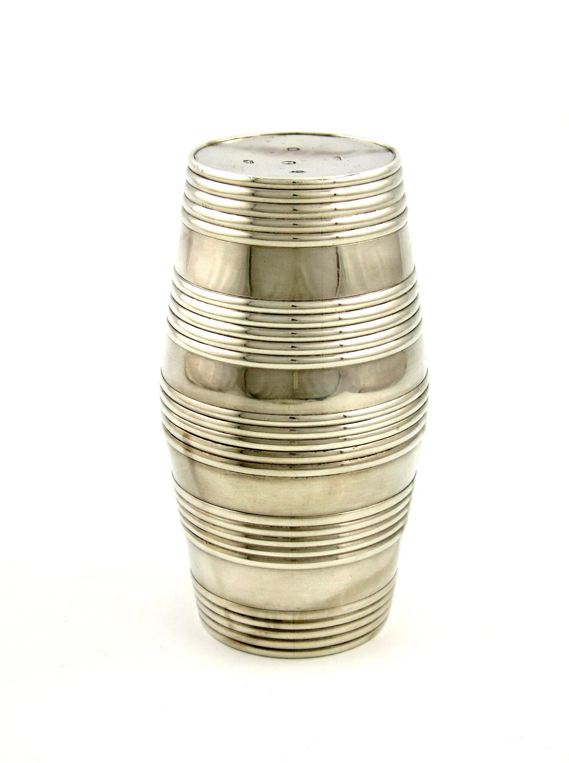 A George III silver barrel double beaker