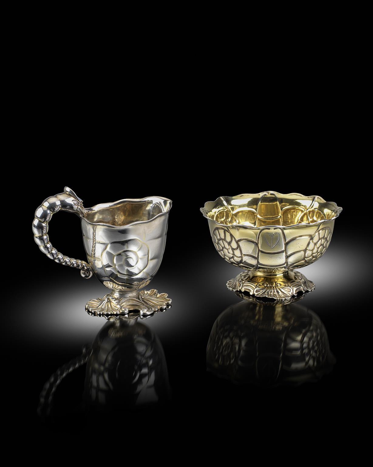 A George II silver cream jug and silver-gilt sugar bowl