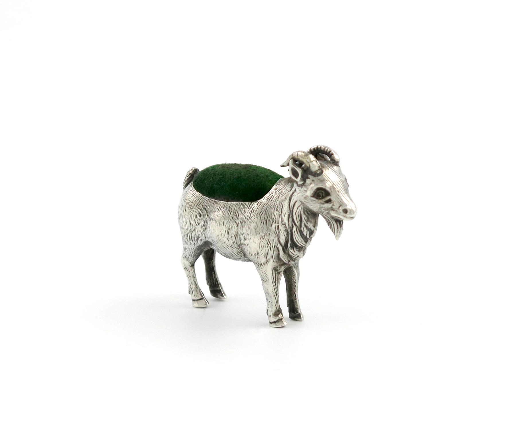 An Edwardian novelty silver goat pin cushion,