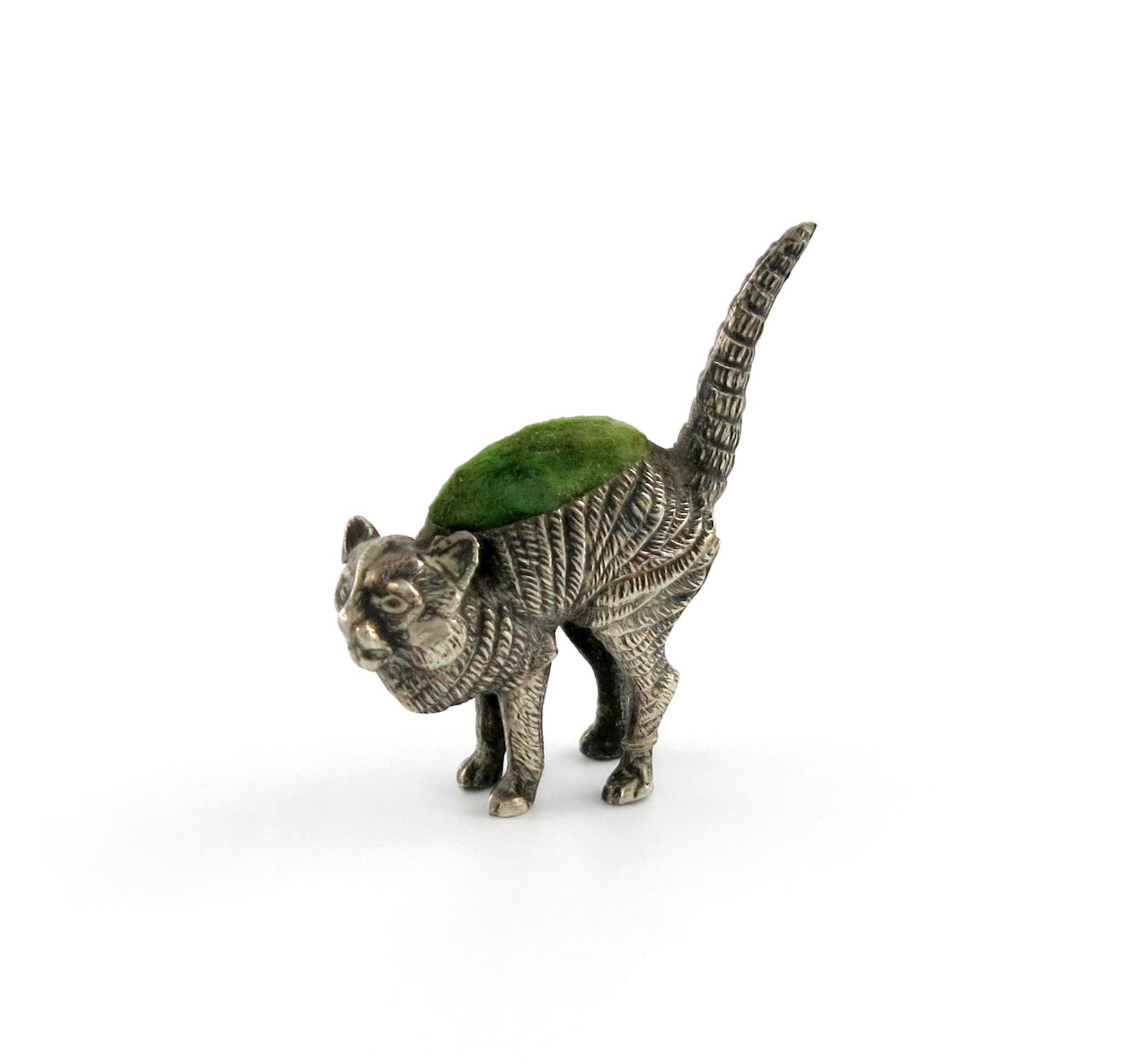 An Edwardian novelty silver cat pin cushion