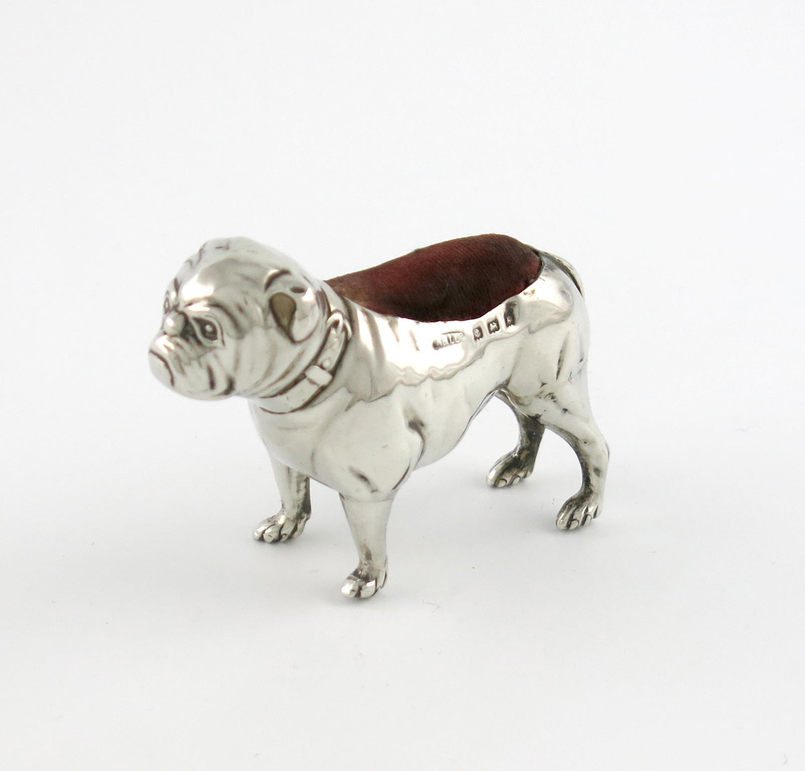 An Edwardian novelty silver bulldog pin cushion