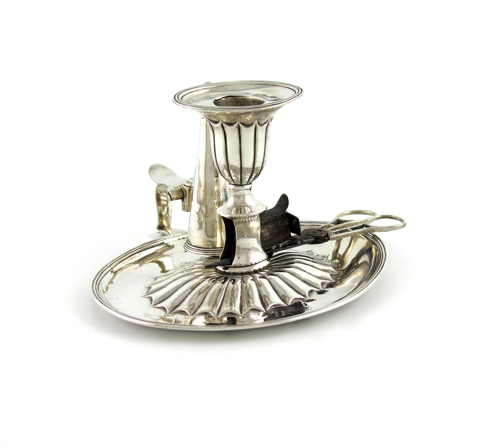 A George III silver chamber stick and scissor snuffers