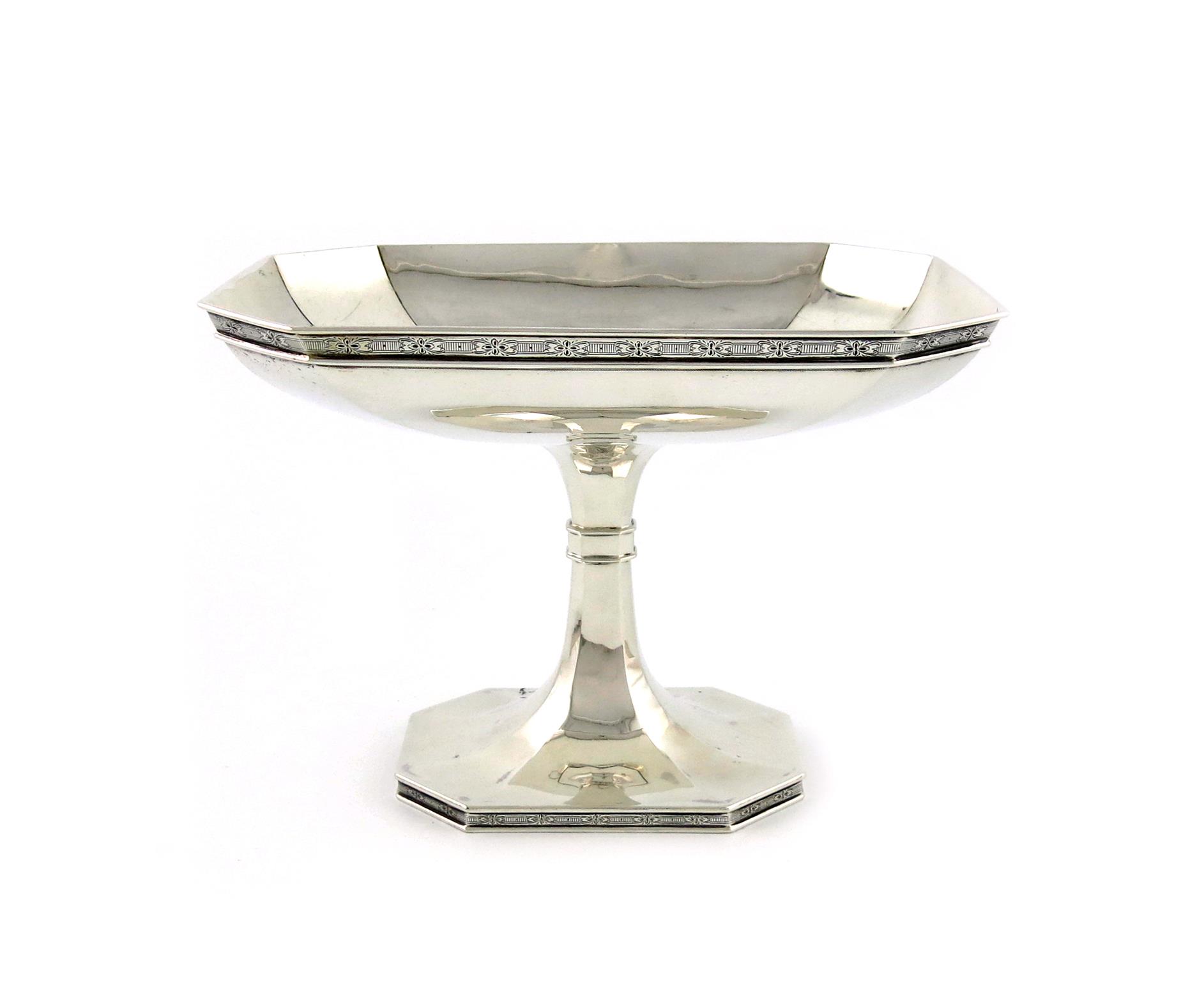 rectangular form, canted corners, on a raised panelled rectangular foot, canted corners, length 23.5cm, approx. weight 16.3oz.