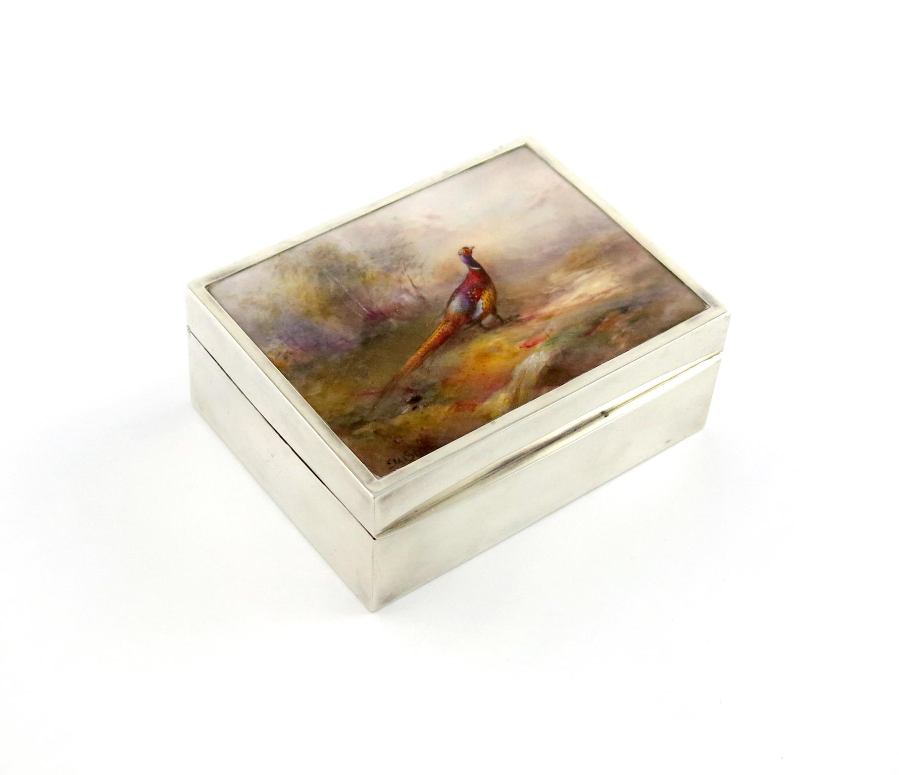 A silver-mounted Royal Worcester cigarette box