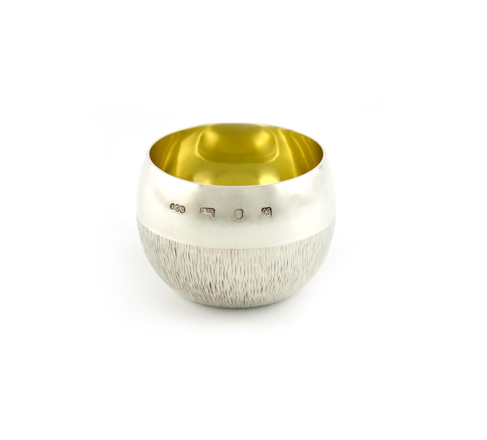 circular bellied form, textured decoration, gilded bowl, height 5cm, approx. weight 3.3oz.