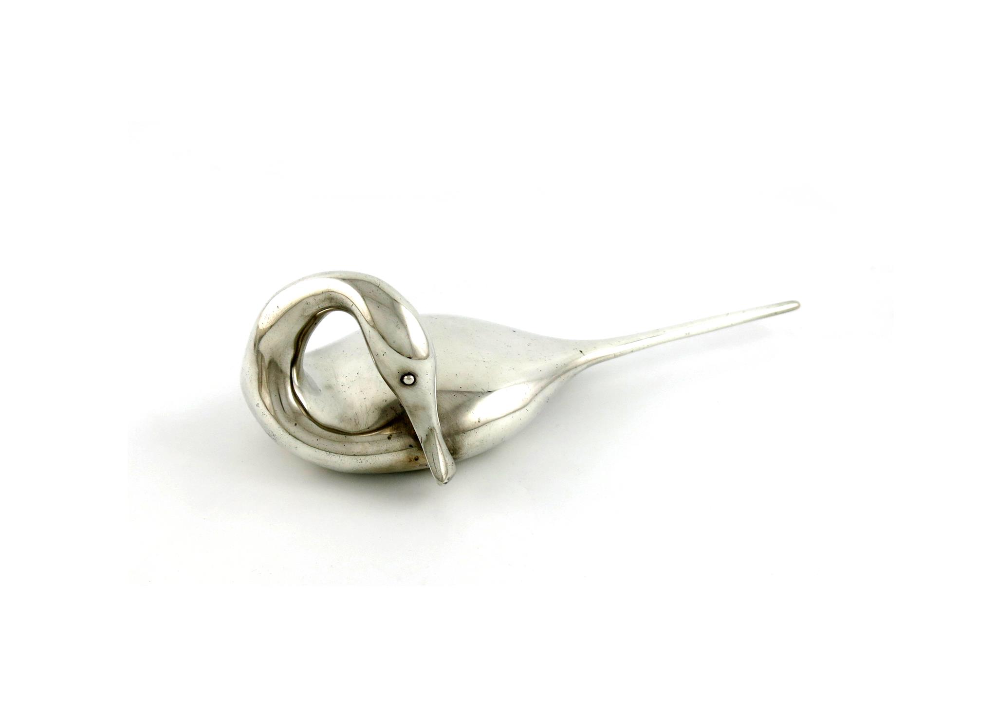 Designed by Guy Taplin, a silver sculpture of a Preening Pintail,