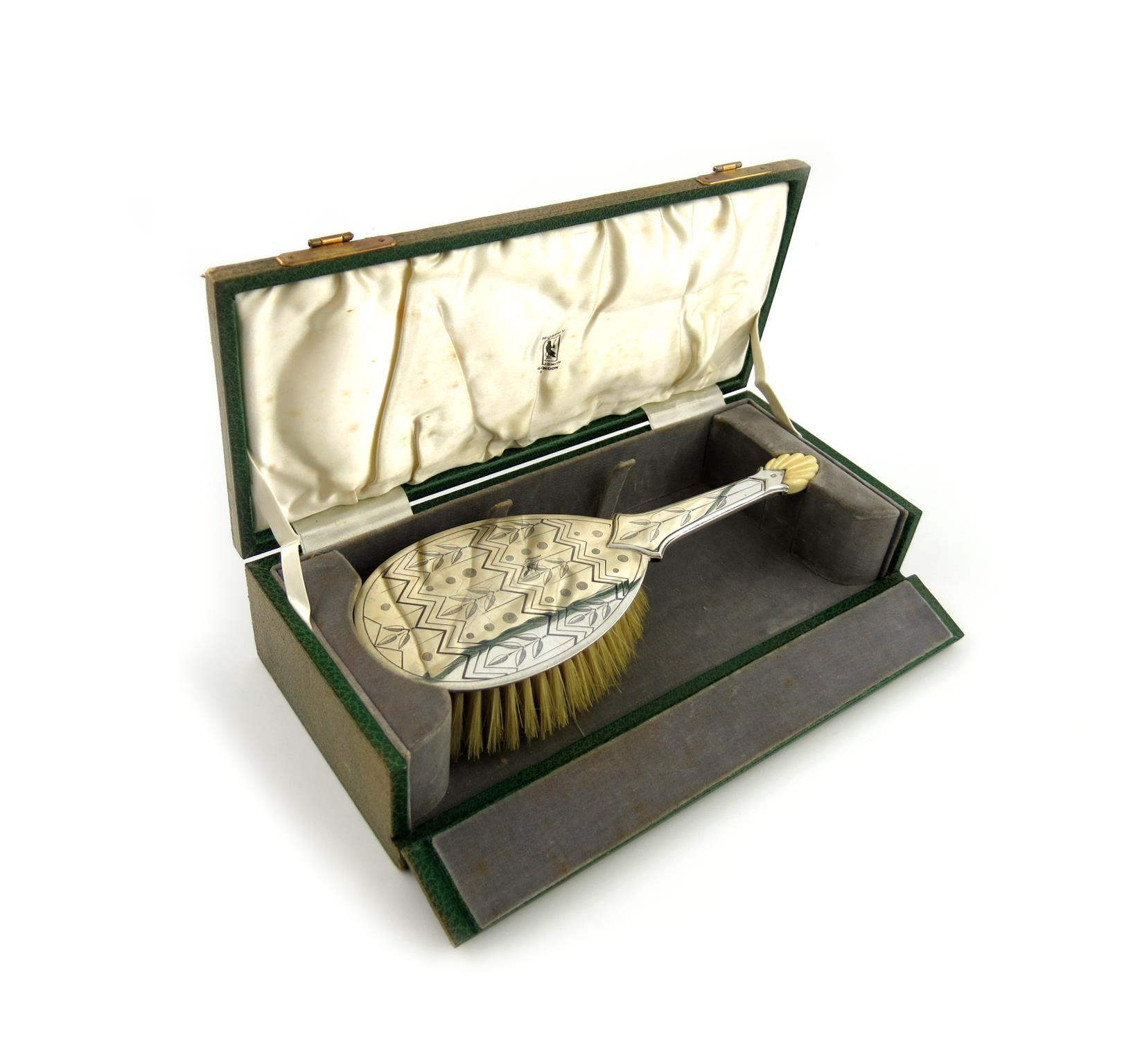 λBy H.G. Murphy, a silver, ivory and niello work Art Deco hair brush,