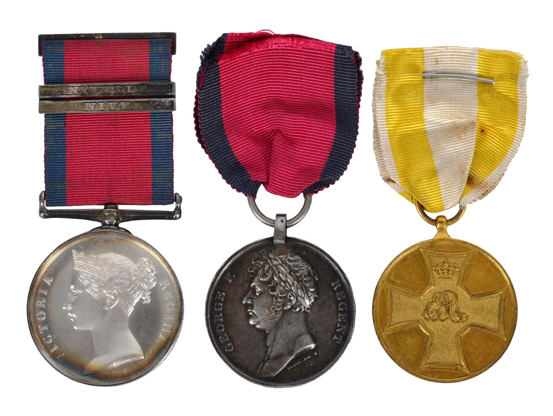 The interesting composite Peninsular and Waterloo group of three medals to Lieutenant George...
