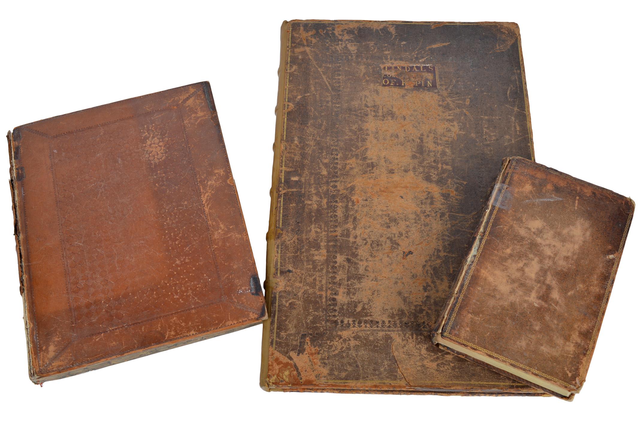 A small collection of numismatic books, including: John and Paul Knapton (pub.), 'The Metallick History of the Reigns of King William III and Queen Mary, Queen Anne, and King George I.' London, 1747, rebound; John Pinkerton, 'An Essay on Medals', Volume II, London 1789; The Rev. Rogers Ruding, 'Annals of the Coinage of Britain and its Dependencies', Volume VI (containing the plates), London 1819; and four others. [7]