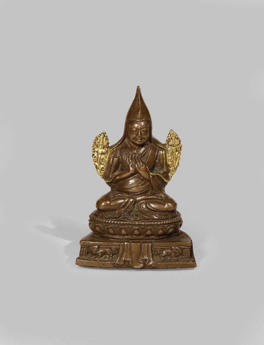 A TIBETAN PARCEL-GILT FIGURE OF TSONGKAPA