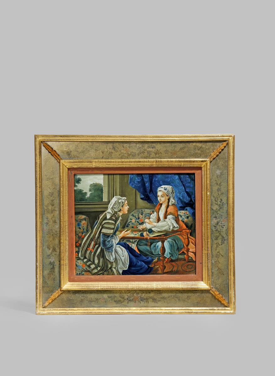 A RARE CHINESE REVERSE GLASS PAINTING LATE 18TH CENTURY Depicting Madame de Pompadour in an interior