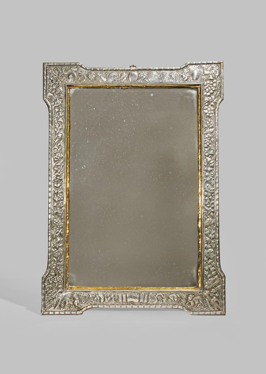 A LARGE CHINESE RECTANGULAR SILVER MIRROR 19TH CENTURY The frame with repoussé decoration of...