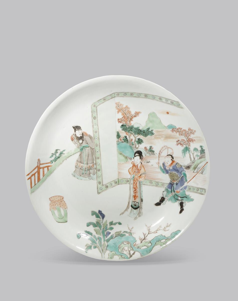 A CHINESE FAMILLE VERTE DISH KANGXI 1662-1722 Painted with Dong Zhuo