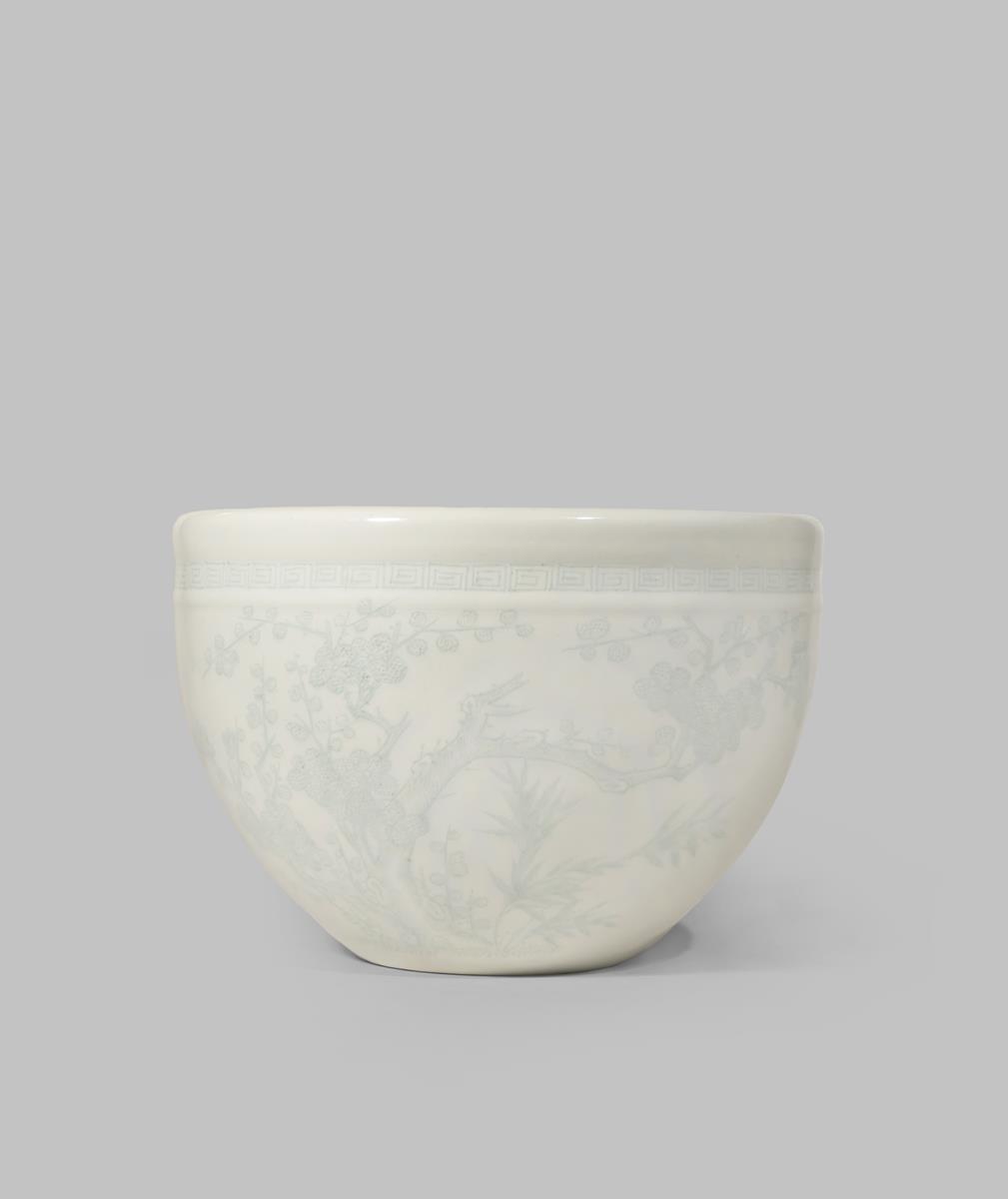 AN UNUSUAL CHINESE INCISED 'PRUNUS' BRUSH WASHER 18TH CENTURY The body incised with a blossoming...