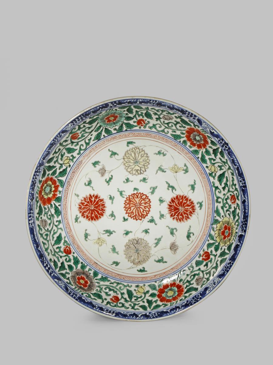 A LARGE CHINESE FAMILLE VERTE DISH SIX CHARACTER KANGXI MARK AND OF THE PERIOD 1662-1722 Painted...