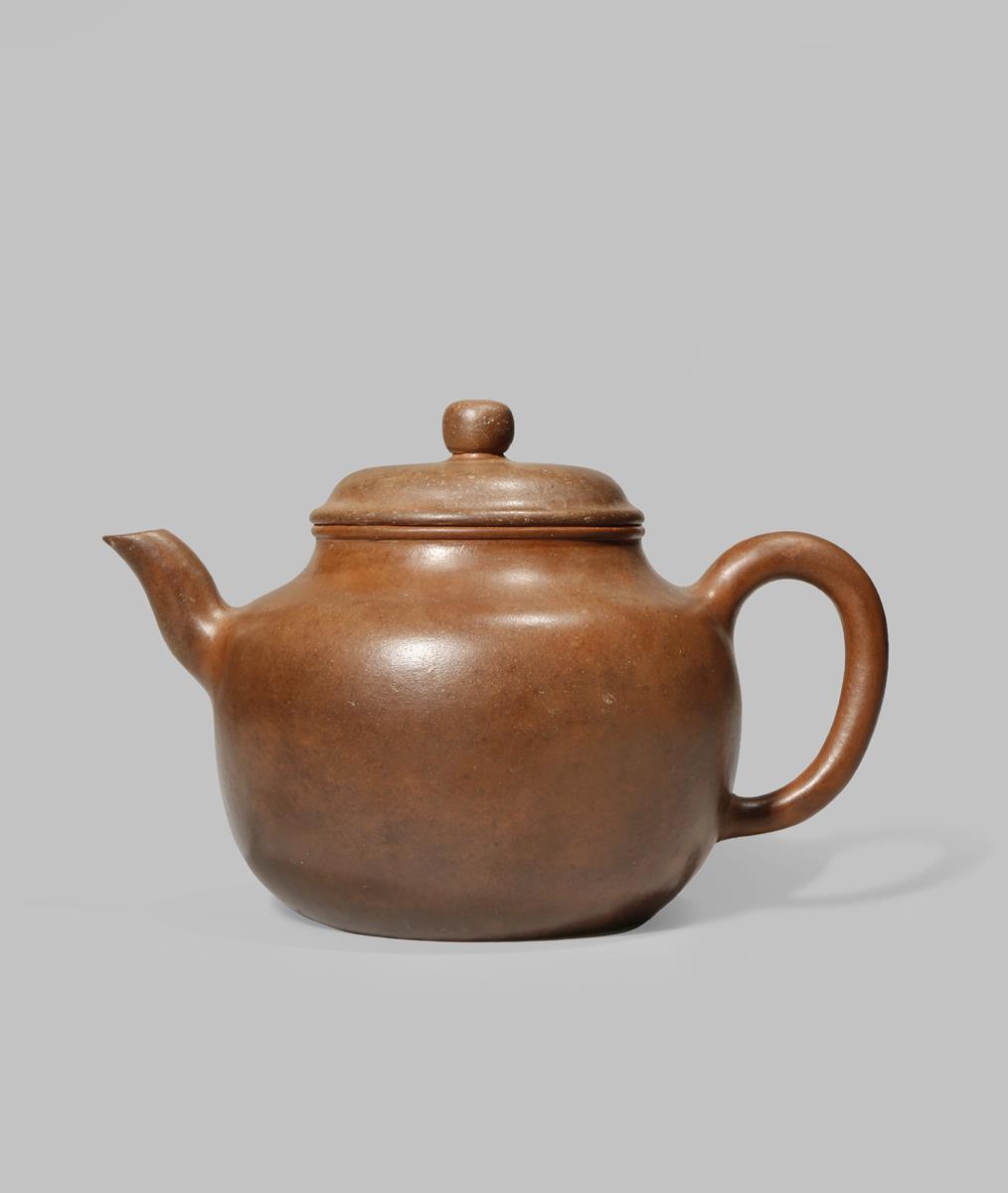 A CHINESE YIXING TEAPOT AND COVER QING DYNASTY With a plain ovoid body