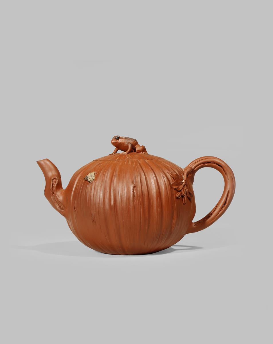 A CHINESE YIXING TEAPOT AND COVER 20TH CENTURY Naturalistically moulded as a large fruit