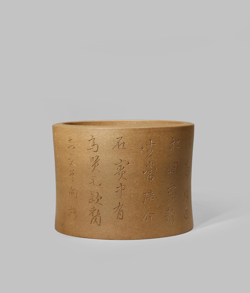 A CHINESE YIXING DUANNI BITONG QING DYNASTY OR LATER With a waisted cylindrical body with eight...