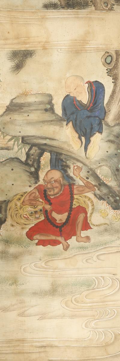 ANONYMOUS (20TH CENTURY) EIGHTEEN LUOHANS Eight Chinese hanging scroll paintings