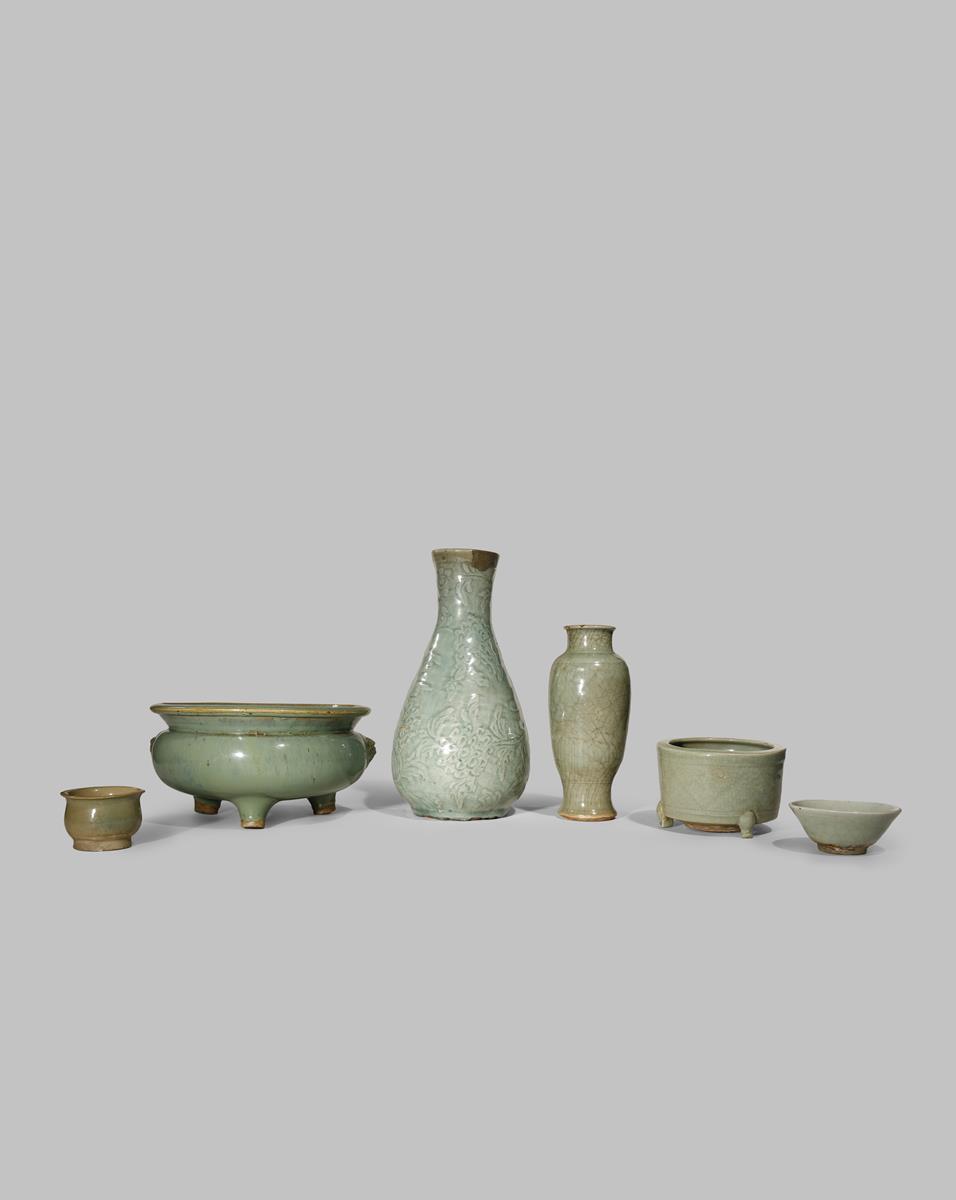 SIX CHINESE CELADON AND CELADON-TYPE ITEMS