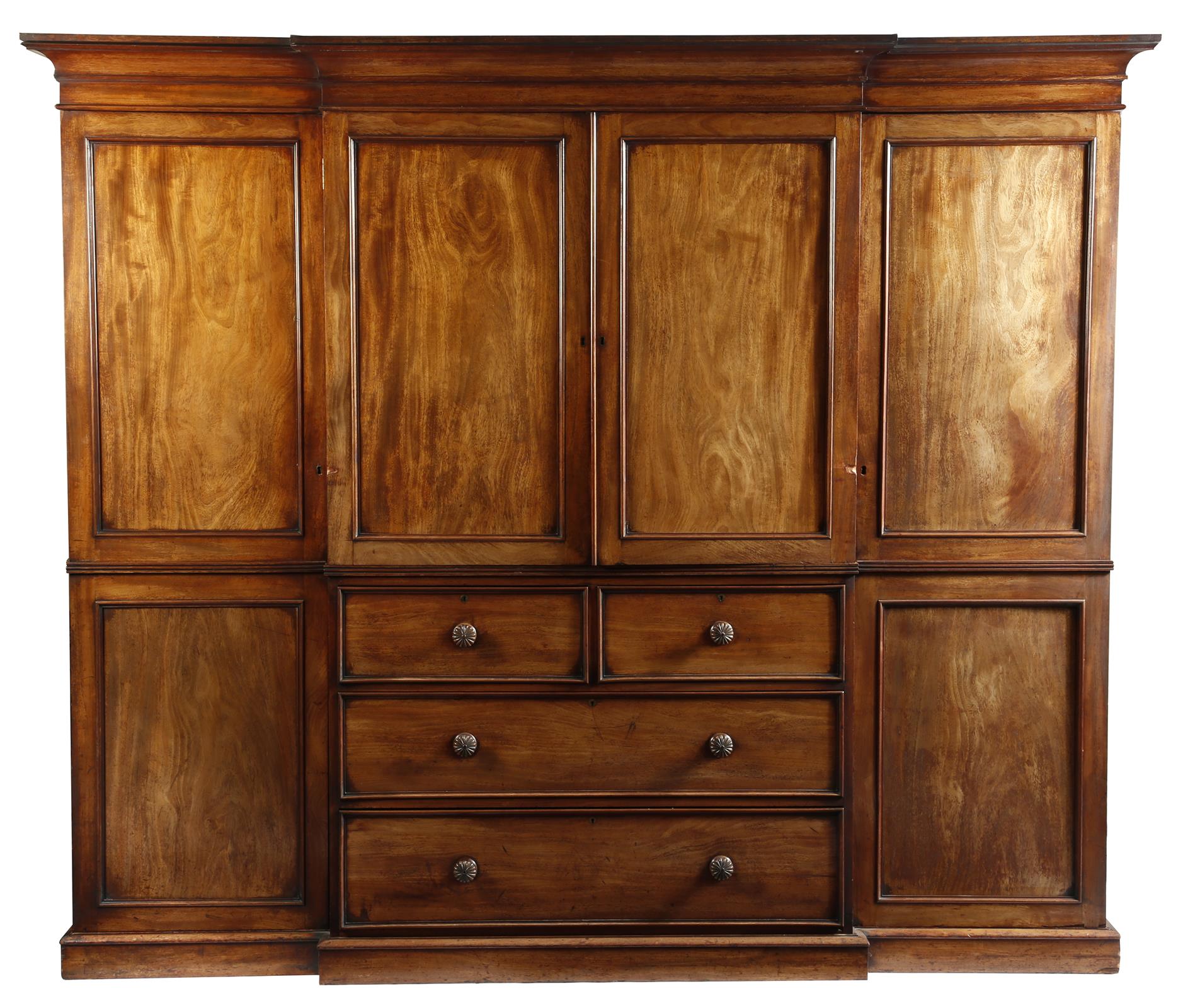 A Regency mahogany breakfront gentleman's wardrobe in the manner of Gillows
