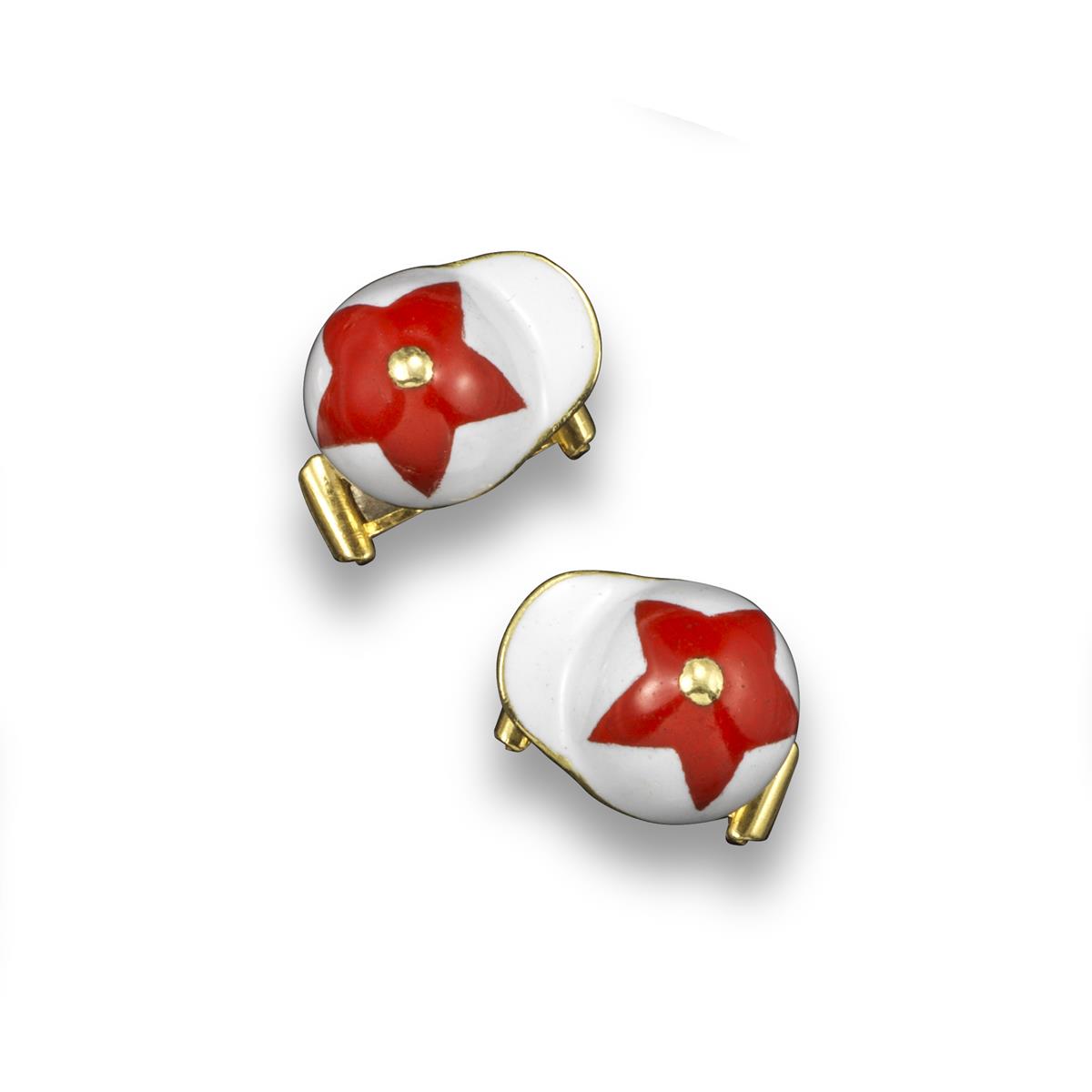 A pair of gold and enamel jockey cufflinks by Theo Fennell, the jockey's hats decorated with red and white enamel in yellow gold, signed Fennel with maker's mark and London hallmarks for 2000