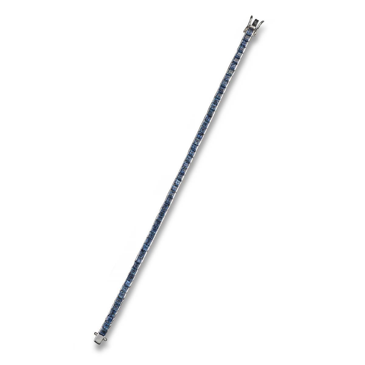 A sapphire line bracelet, set with square-shaped sapphires in white gold square-shaped collets, 17.5cm