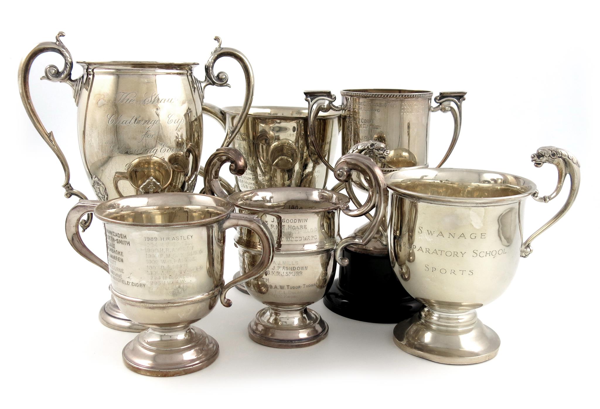 A mixed lot of five silver trophy cups,