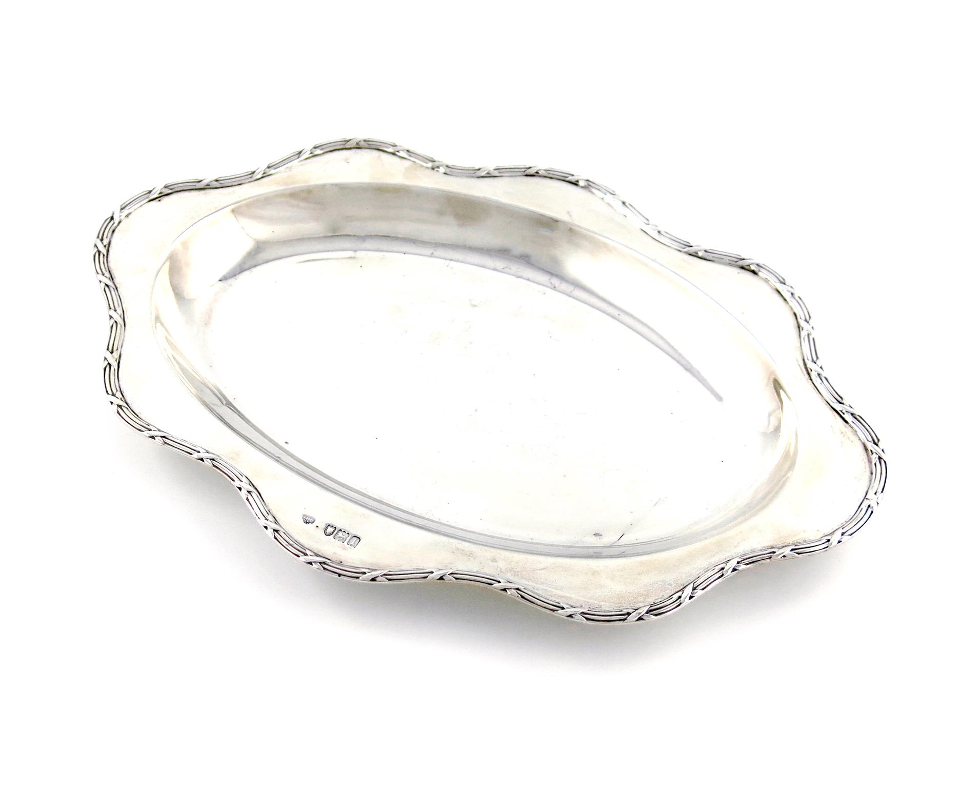 An Edwardian silver dish, by the Goldsmiths and Silversmiths Company, London 1906, shaped oval form, ribbon and reed border, length 23.4cm, approx. weight 14.4oz.