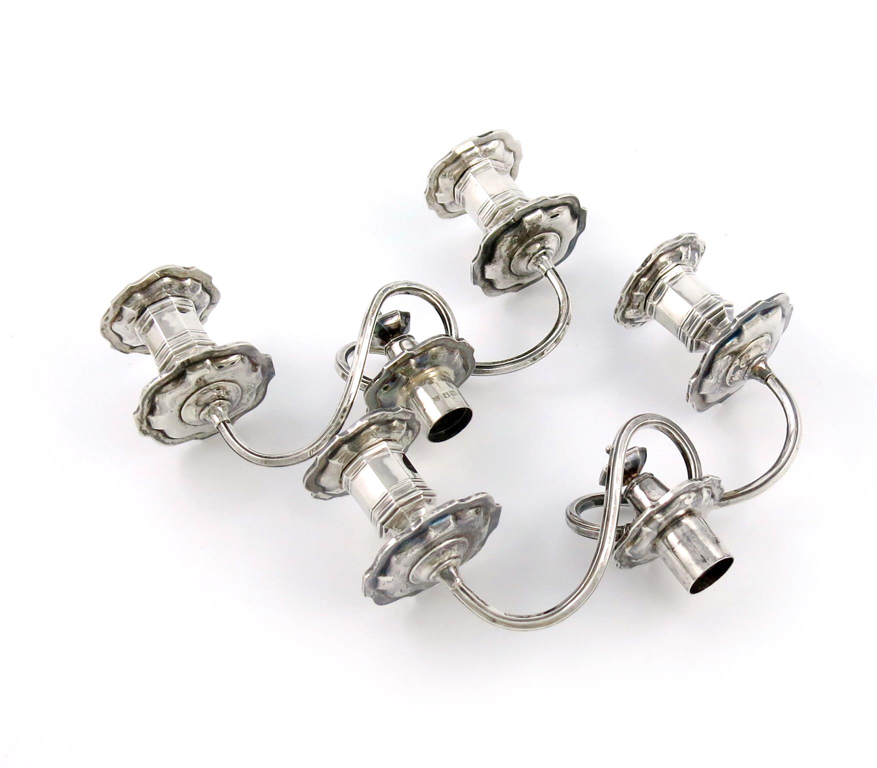A pair of silver two-light candelabra branches