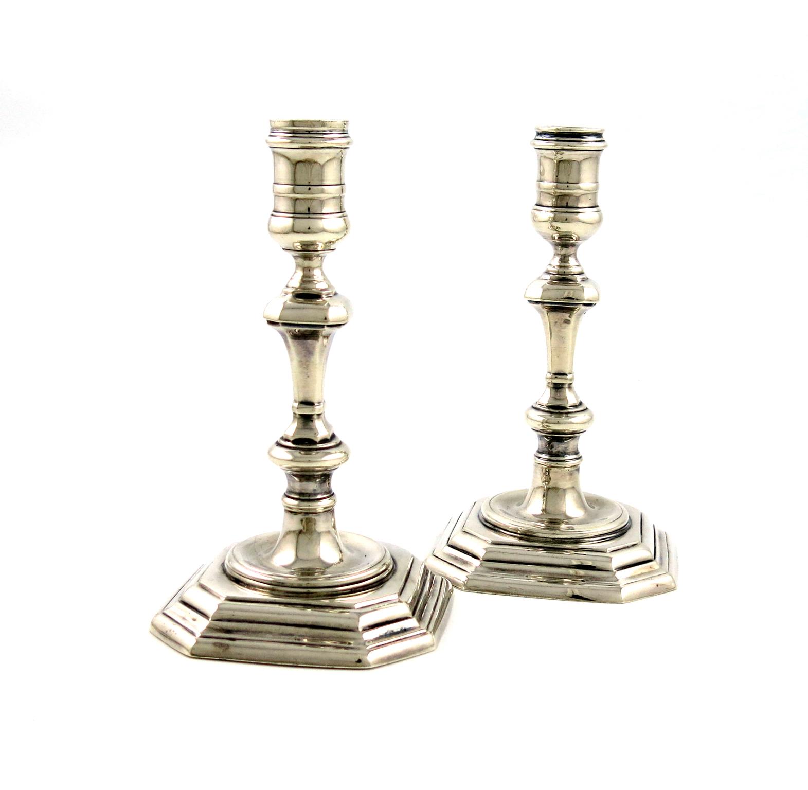 A pair of modern silver candlesticks
