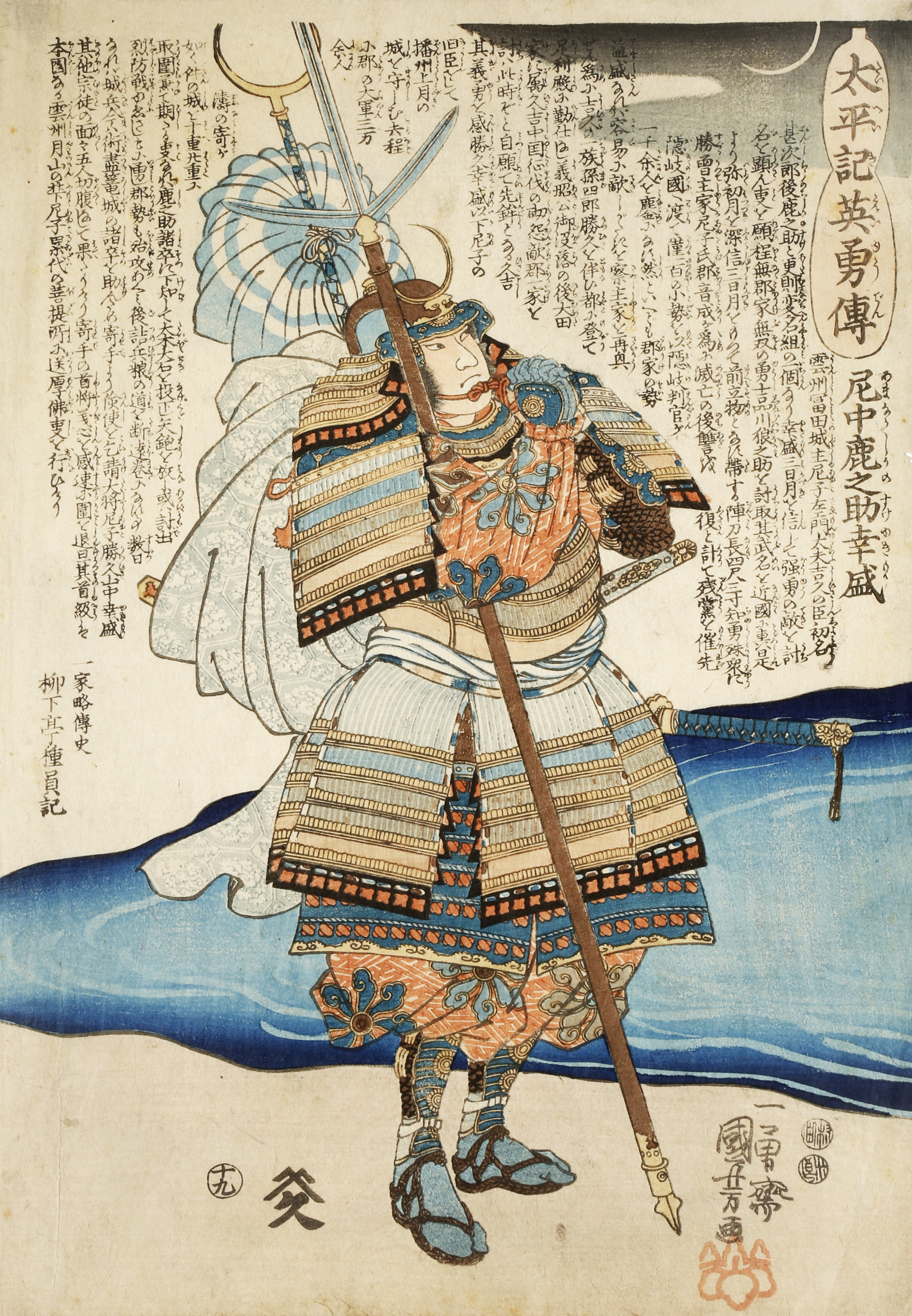 Comprising illustrations from the One Hundred Poems by One Hundred Poets (Hyakunin isshu no uchi) and portraits of heroes and actors by Utagawa Kuniyoshi (1797-1861), together with a portrait of Kiyohime from the One Hundred Ghost Stories of China and Japan (Wakan Hyaku Monogatari) by Tsukioka Yoshitoshi (1832-1892) and the portrait of Kisegawa of the Matsubaya pleasure house, from the series Beauties of the Yoshiwara as Six Floral Immortals (Seirô bijin Rokkasen) by Hosoda Eishi (1756-1829), 37.5cm x 25cm max. (12)