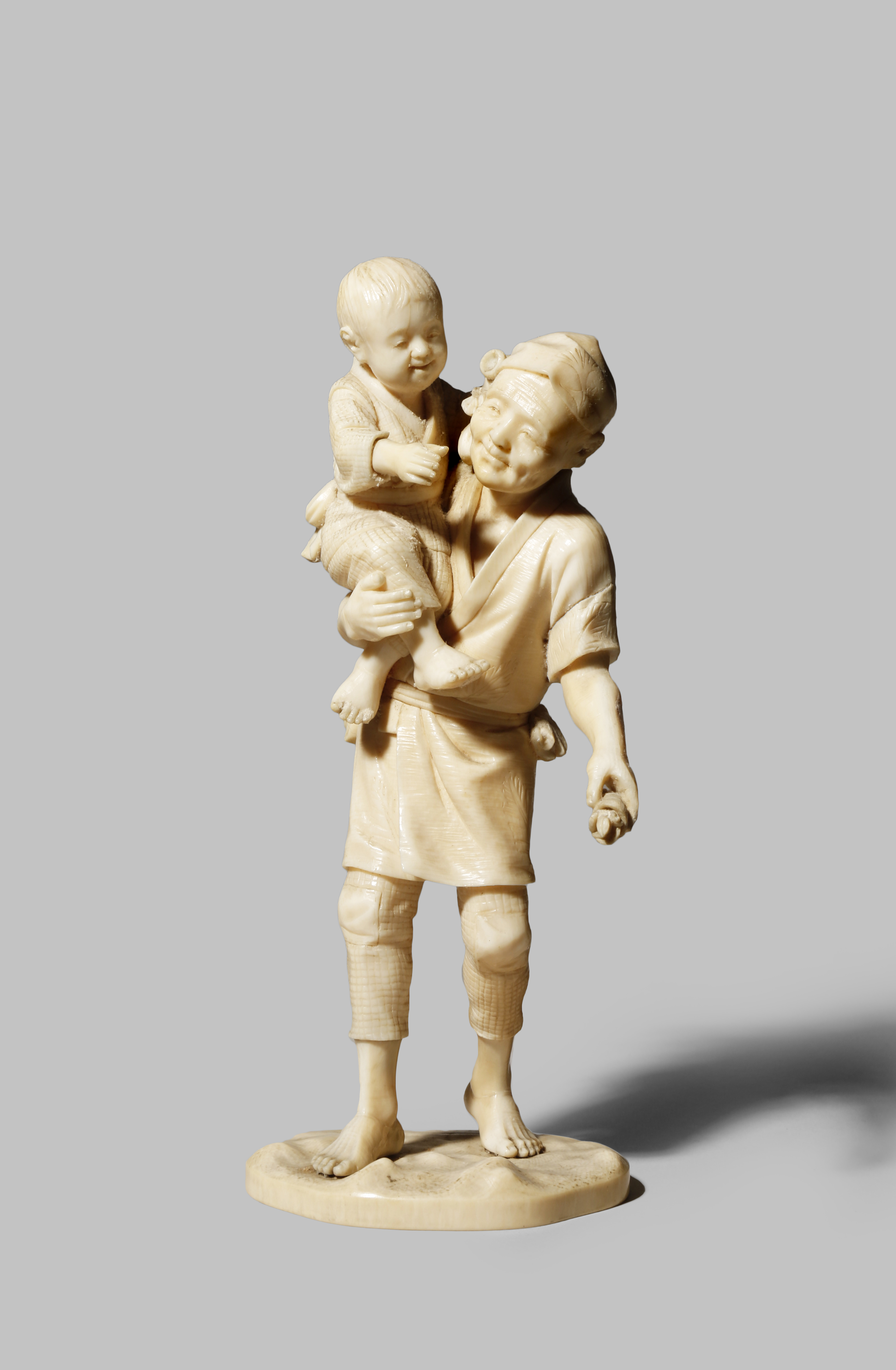 A JAPANESE IVORY OKIMONO MEIJI 1868-1912 Depicting an elderly man dressed as a fisherman and...