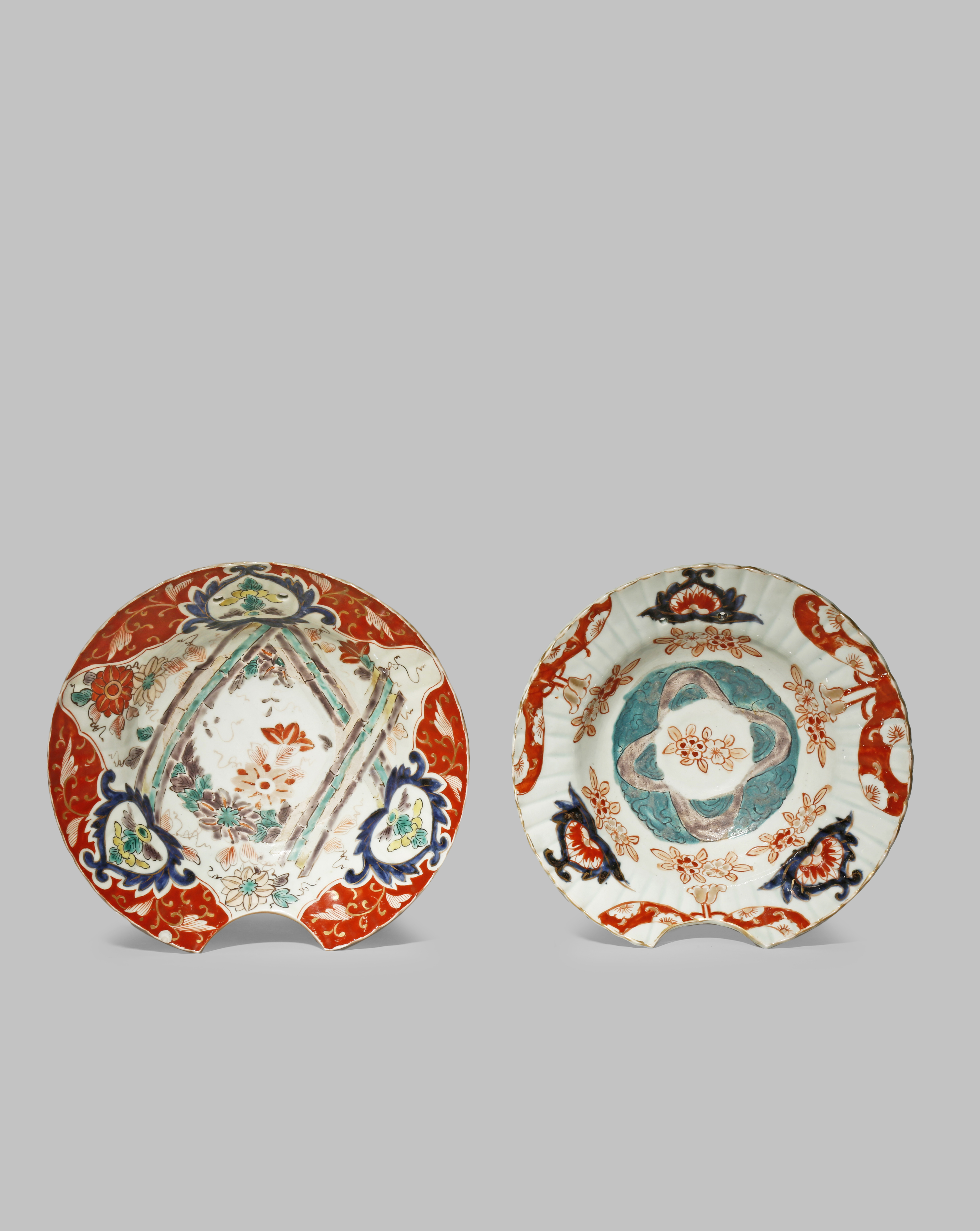 TWO JAPANESE IMARI BARBER'S BOWLS EDO/MEIJI PERIODS Of typical circular shape with an opening to...