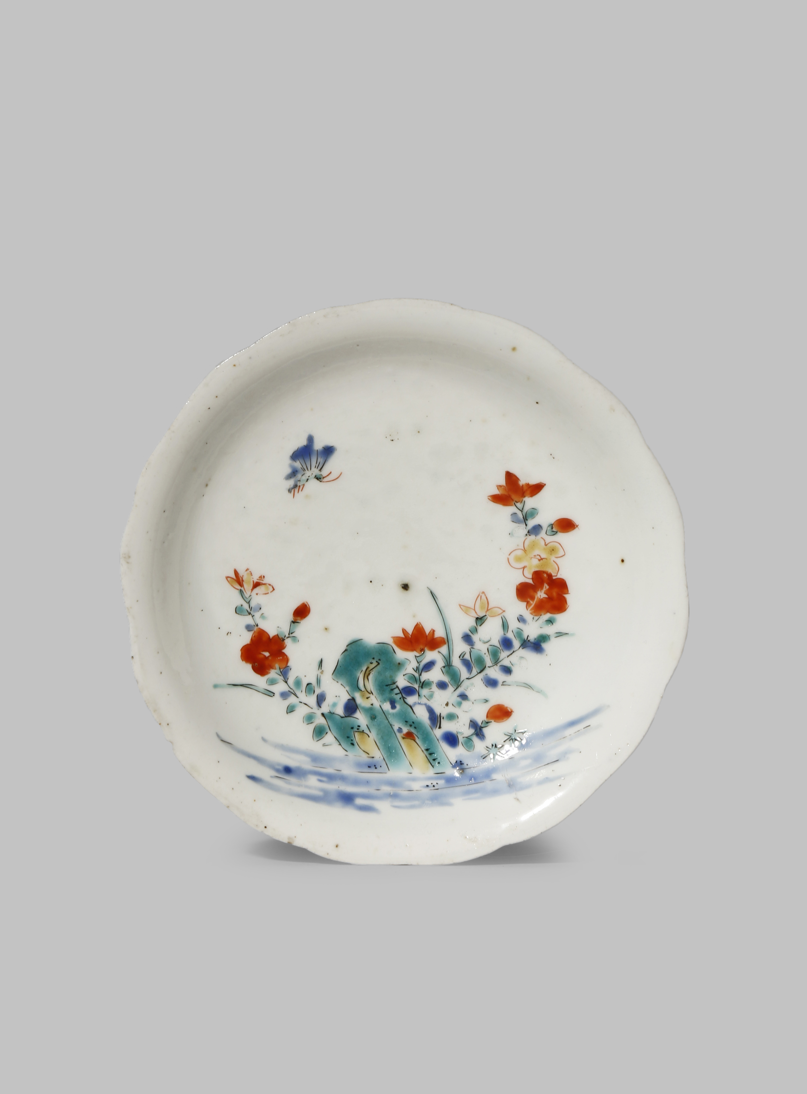A SMALL JAPANESE KAKIEMON SCALLOPED DISH