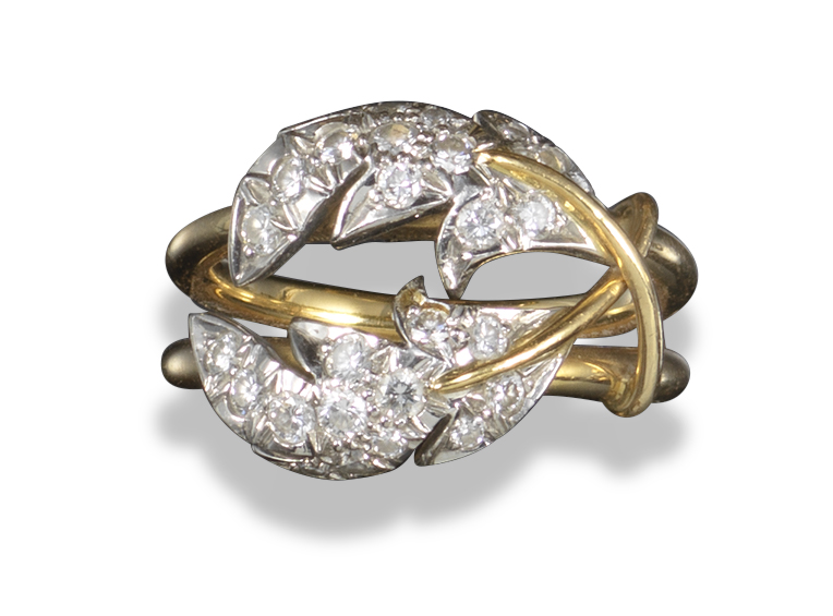 A diamond-set gold foliate ring by Schlumberger for Tiffany