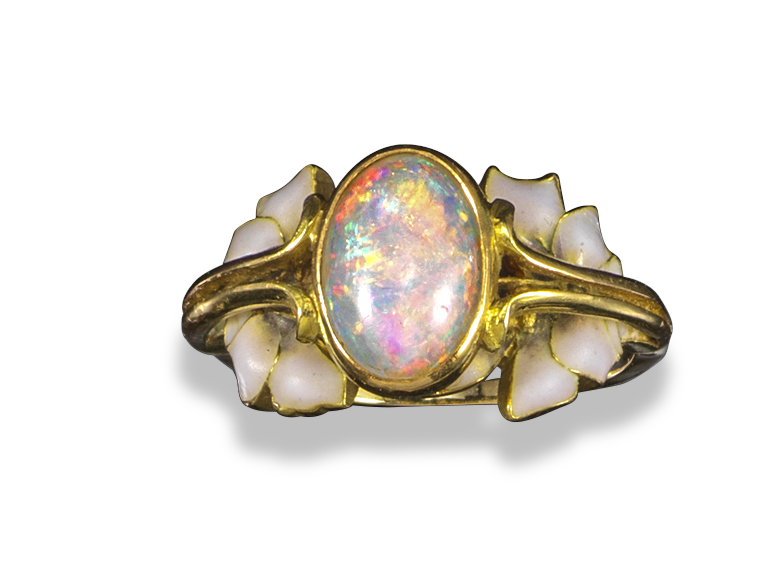 An Art Nouveau opal and enamel ring by René Lalique