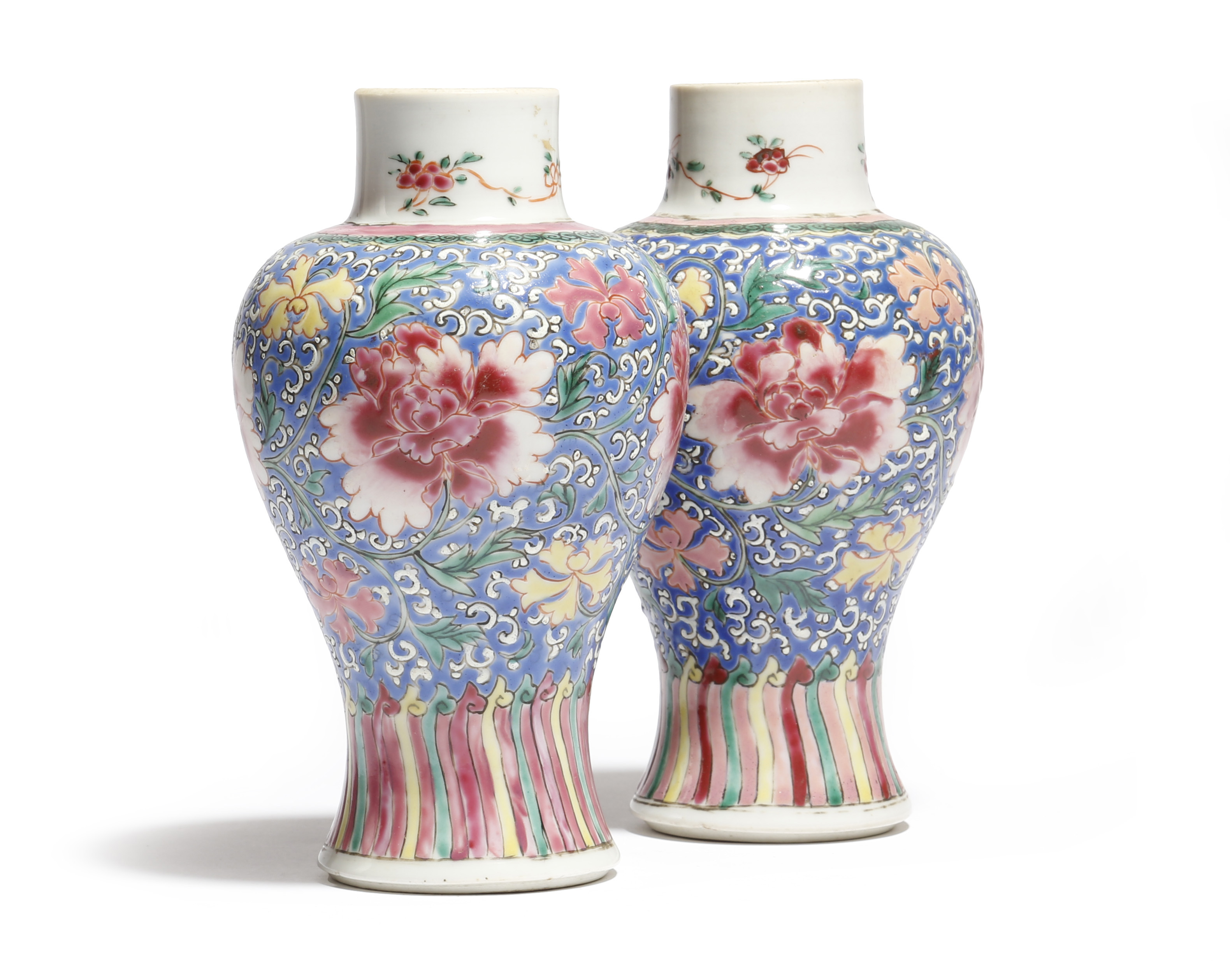 A small pair of Chinese porcelain famille rose baluster vases
