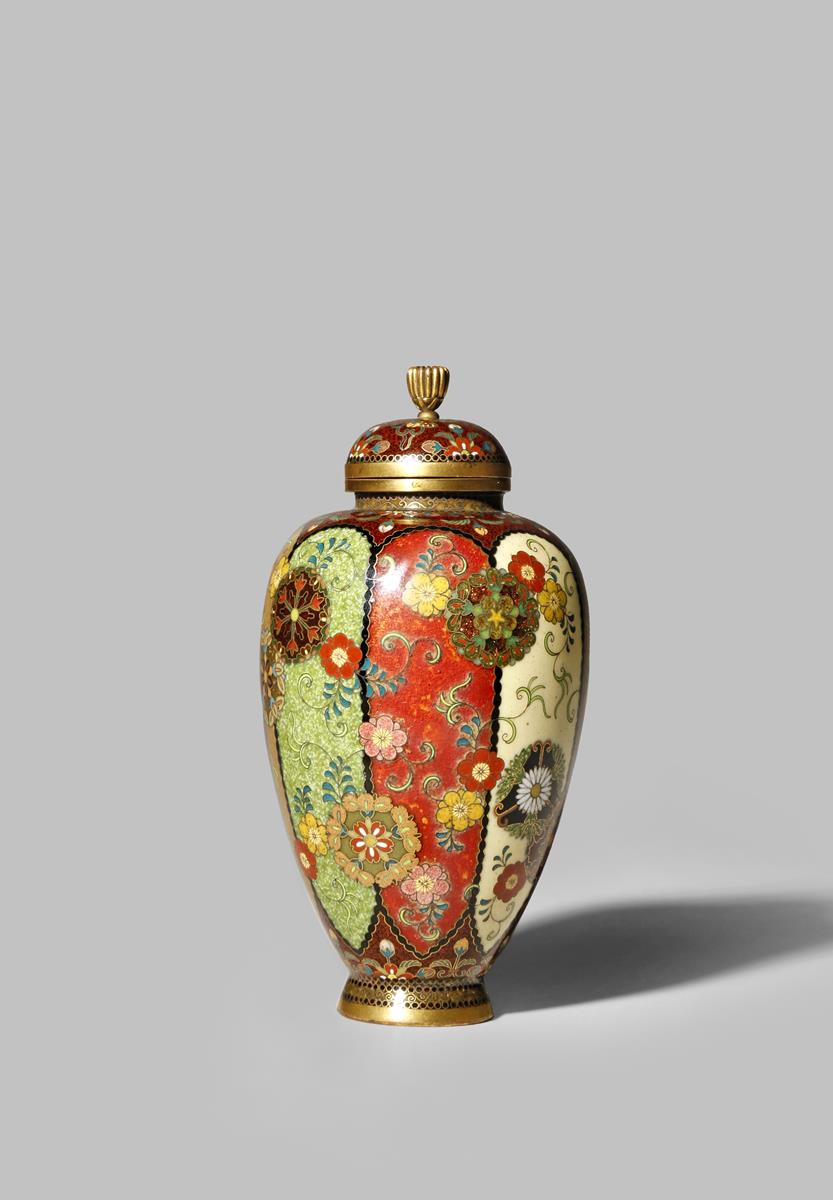 A JAPANESE CLOISONNE ENAMEL MINIATURE VASE AND COVER BY NAMIKAWA YASUYUKI (1845-1927)