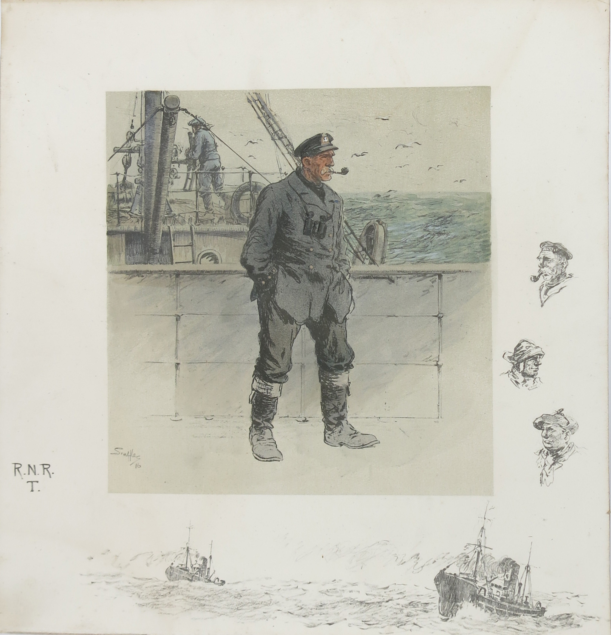'Snaffles' Charles Johnson Payne (1884-1967) R.N.R.T. 1916 print highlighted in colour