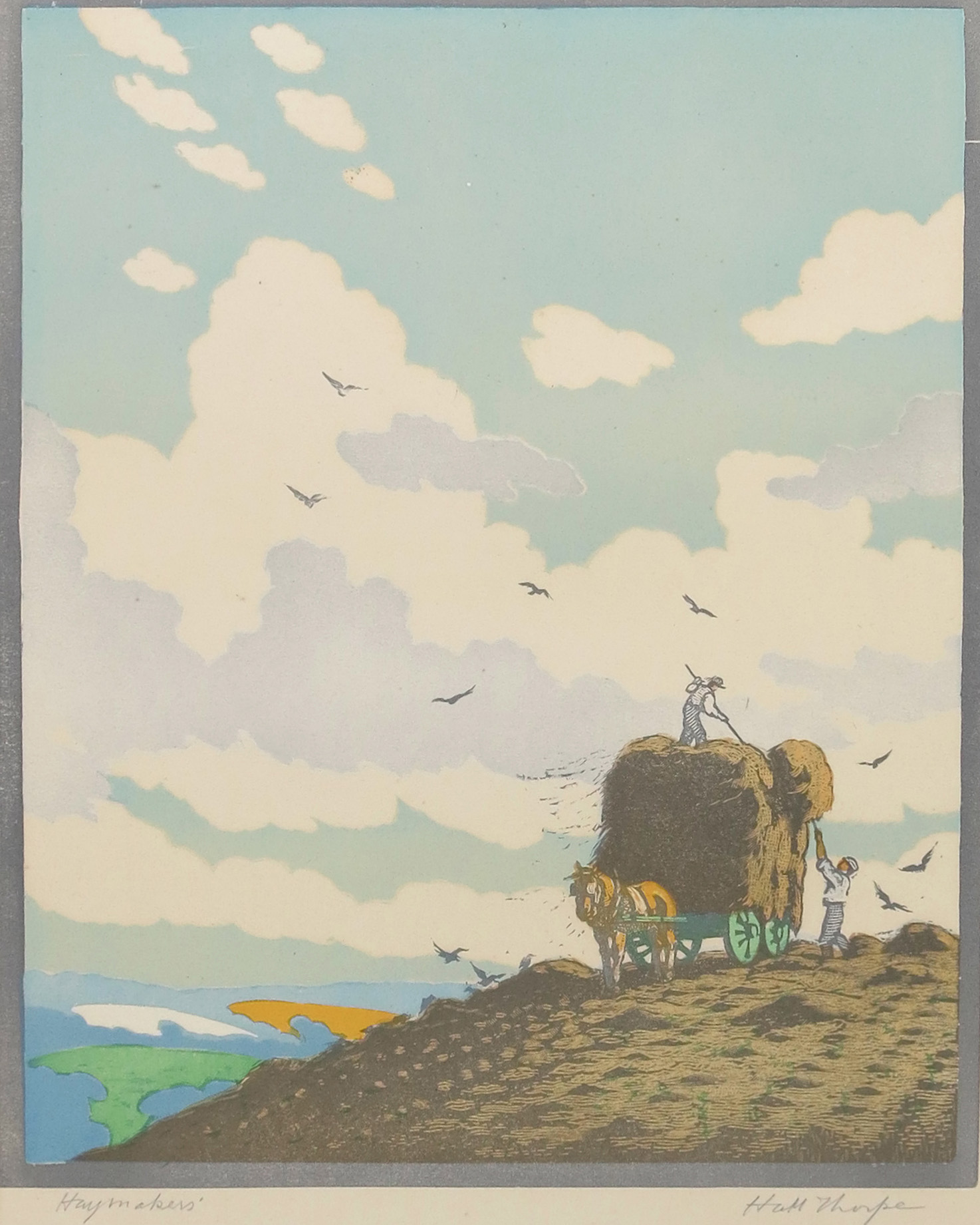 John Hall Thorpe (1874-1974) Haymakers woodcut on paper