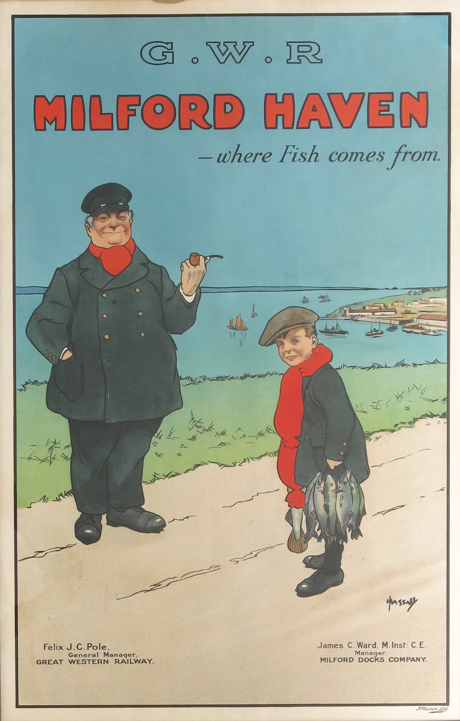 John Hassall (1868-1948) Milford Haven - Where Fish Come From a GWR lithographic poster published...